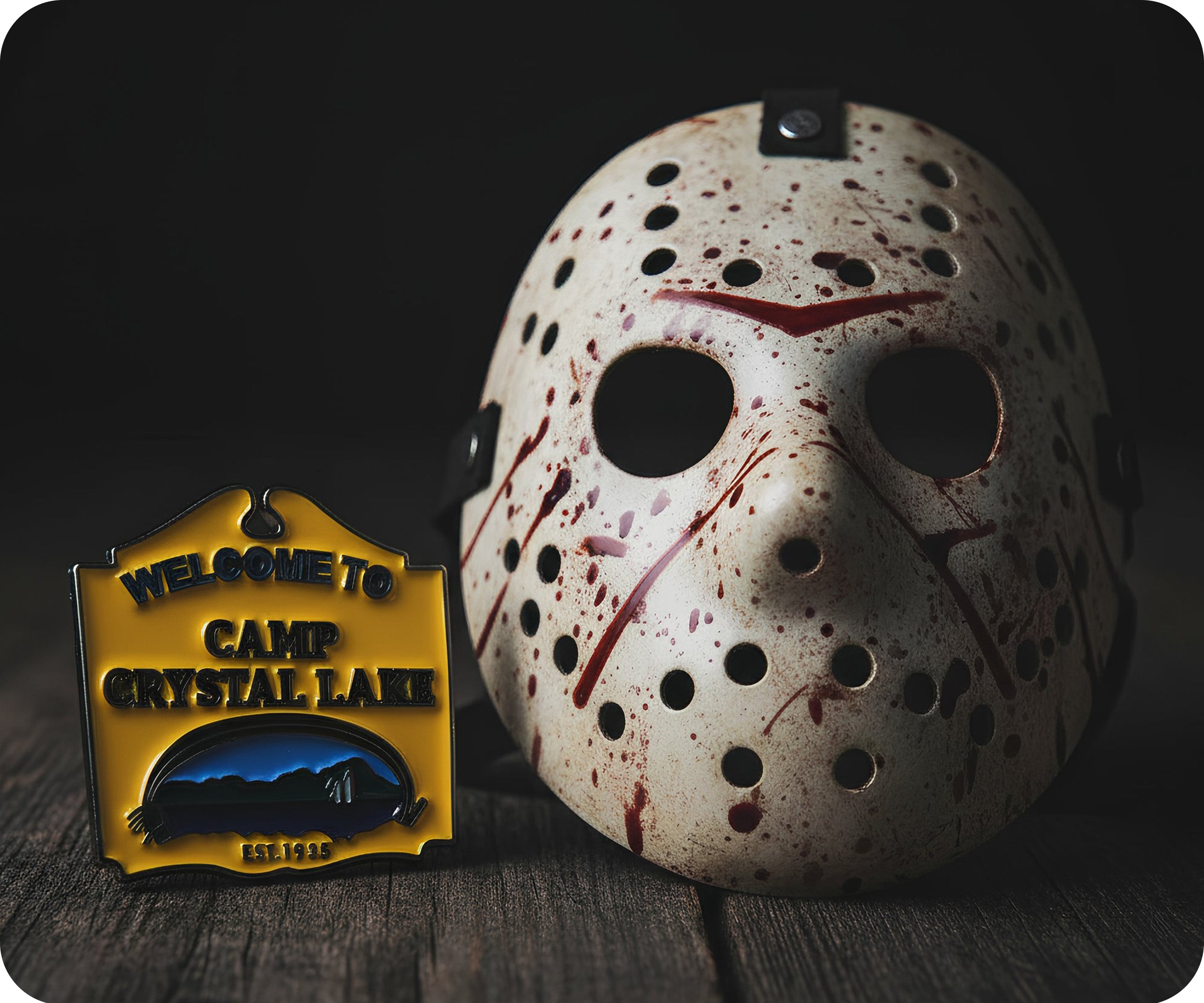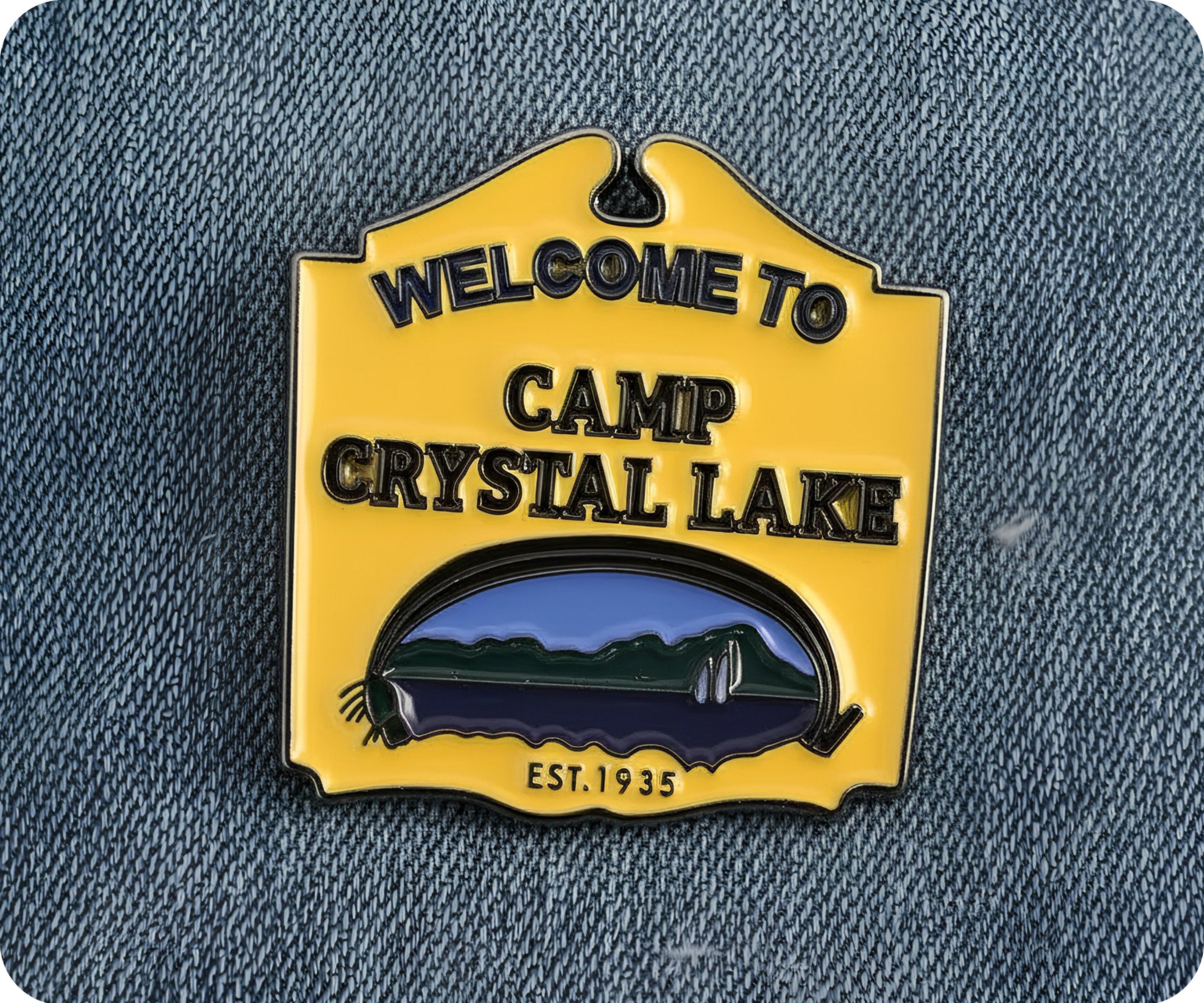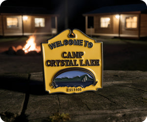 Join us at Camp Crystal Lake with this quirky pin badge! Perfect for horror movie fans, it features a playful design and will add some fun to any outfit. Show off your quirky side and embrace the spooky vibes with this Welcome To Camp Crystal Lake pin!
