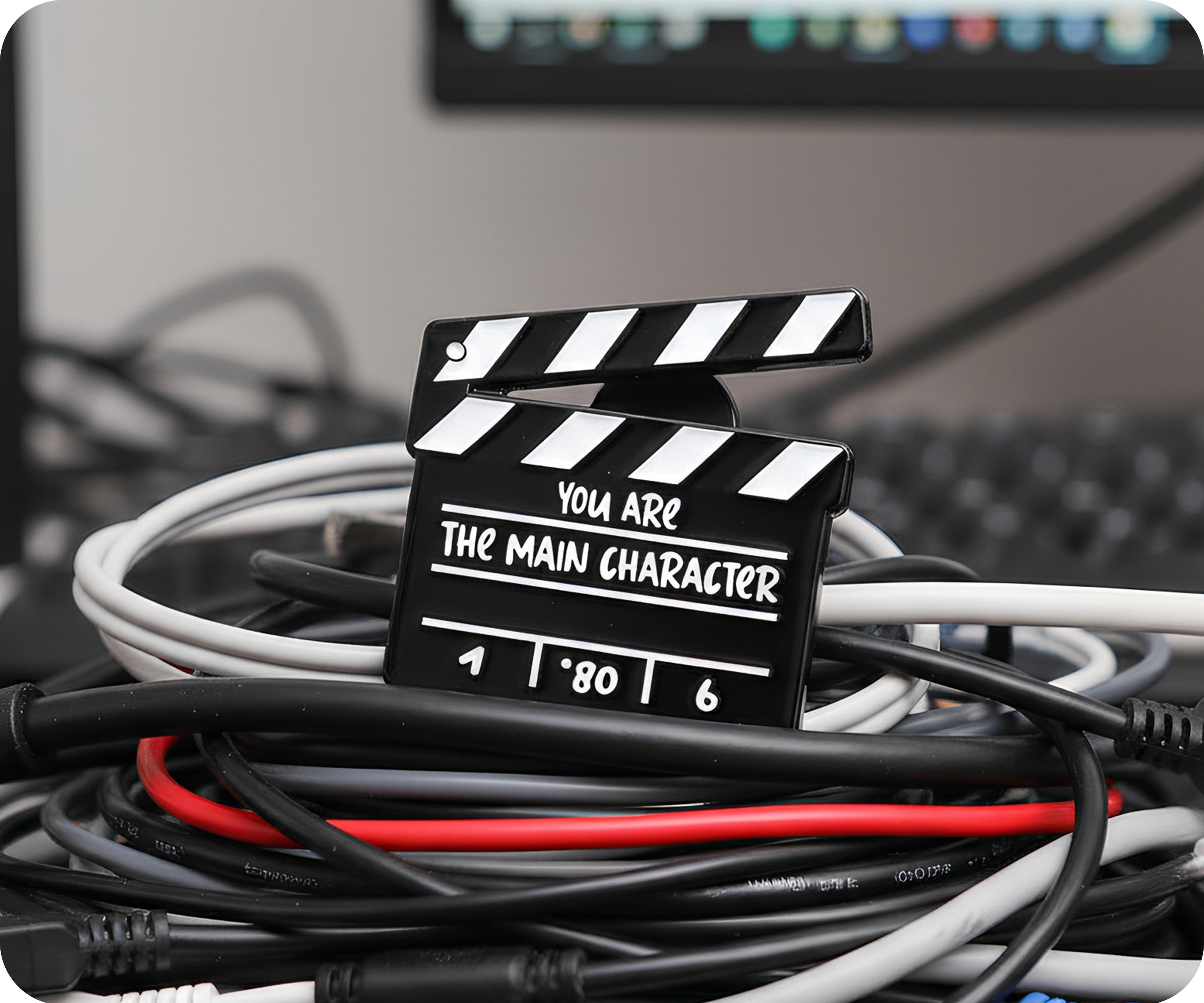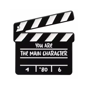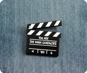 Stand out from the crowd with the You Are The Main Character Clapper Film Pin Badge! Show off your unique personality and love for film with this quirky accessory. Perfect for adding a touch of fun to any outfit, whether you're on set or just a movie buff. (Lights, camera, action!)